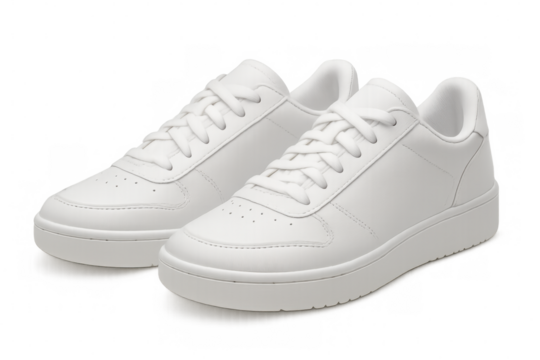 Stylish white sneakers isolated on a transparent background, perfect for showcasing footwear design or promoting athletic wear