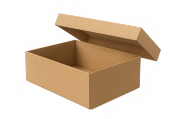 Empty bright blue corrugated plastic shoebox with lid wide open isolated on transparent background