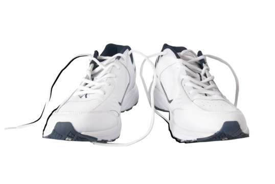 Pair of white trainers sneakers shoes in PNG isolated on transparent background