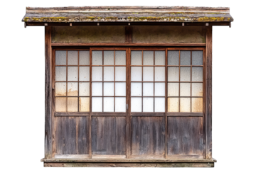 Japanese house wooden door window frame isolated on white background
