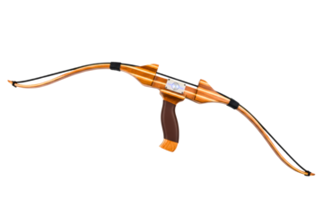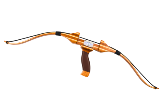 Laminated wooden archery bow with black string and grip isolated on a transparent background