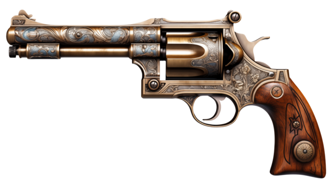 Ornate Engraved Revolver Gun Metalwork Western Weapon