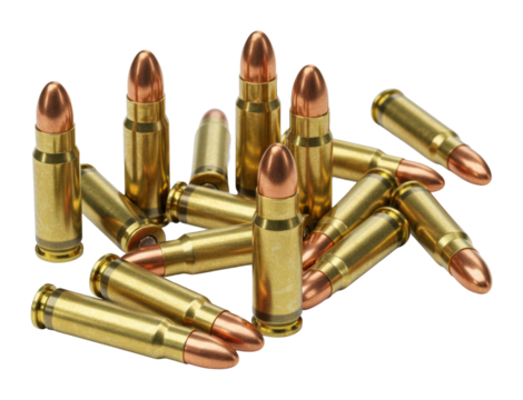 Large caliber bullet isolated on transparent background, perfect for compositions related to war, hunting, or crime
