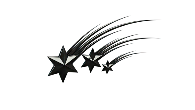 A bright golden comet with a sparkling tail streaking across a transparent background, isolated on transparent background