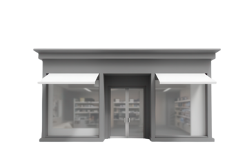 Modern minimalist clothing store building front view isolated PNG with Transparent Background