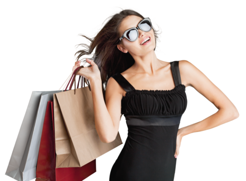 Smiling woman carrying shopping bags using transparent background