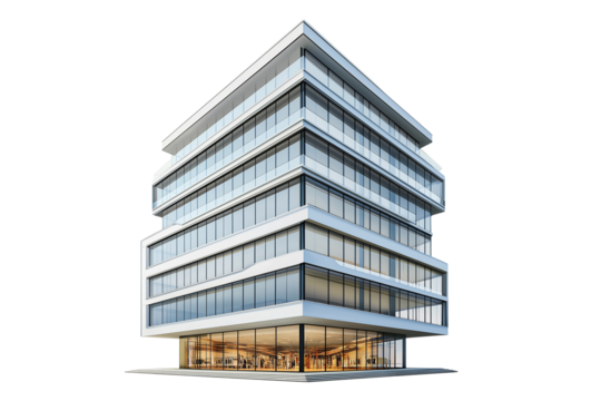 Architectural High-Rise Shopping Center Isolated on Transparent Background. Modern Office Building Exterior PNG Isolated.