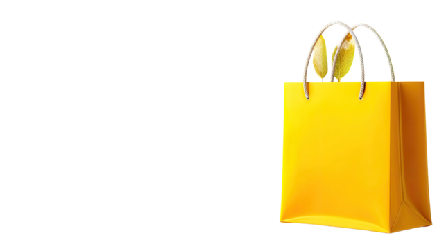 Hands, shopping bags and purchase for fashion, discount or sale on transparent background. Hand of shopper holding bag of gifts, present or luxury retail products on copy space