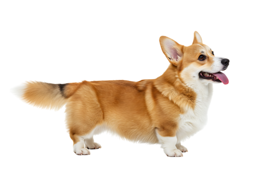Isolated corgi dog standing on transparent background with alert expression and short legs