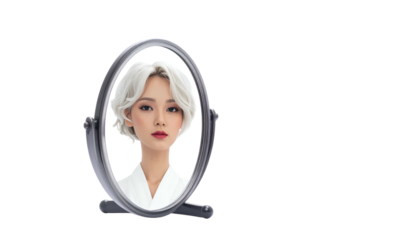 Elegant short hairstyle for modern women with silver hair color, cut out - stock png.