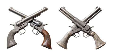 Ornate Crossed Pistols with Intricate Engravings on Transparent Background