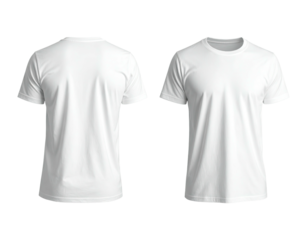 Three blank t-shirts, grey, white, and black, arranged on a neutral background