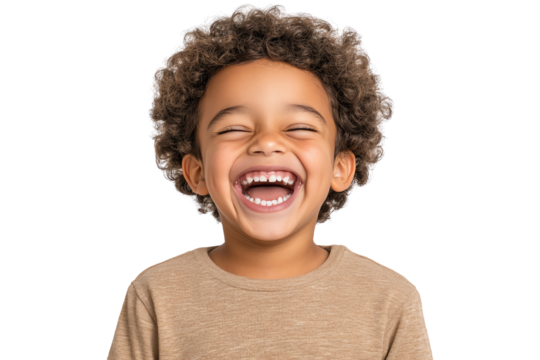 Cheerful boy giving thumbs up, smiling brightly at the camera, isolated on a white background, showcasing joy and positivity.