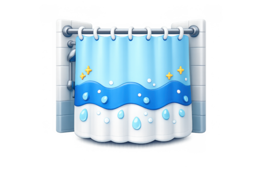 Simple shower curtain icon with water droplets for bathroom design