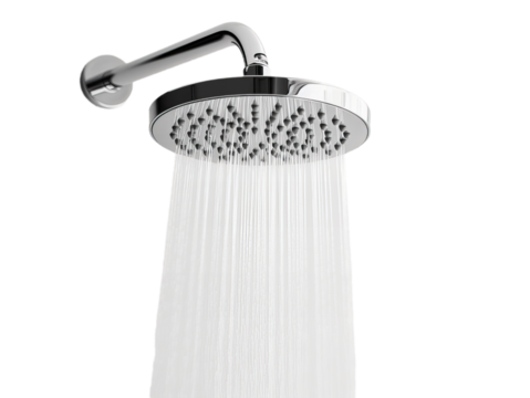 Blue Shower Heads with Water Droplets Illustration on Transparent Background