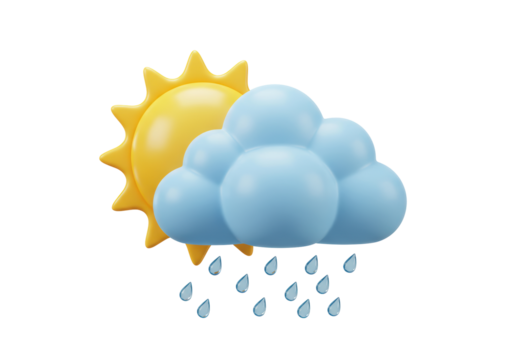 Isolated partly sunny with rain forecast, cartoon style weather prediction vector illustration