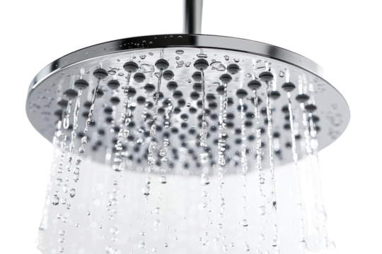Modern Rainfall Showerhead Producing a Cascading Water Experience on White or PNG Transparent Background