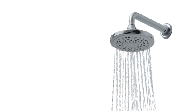 Discovering serenity in a modern bathroom with a sleek, chrome showerhead and calming ambiance isolated on transparent background