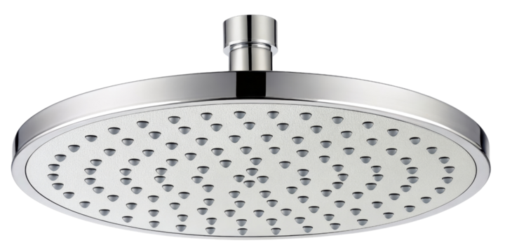 Round Shower Head, Chrome Finish, Isolated on Transparent Background, Bathroom Fixture, Plumbing, shower, rainfall, chrome