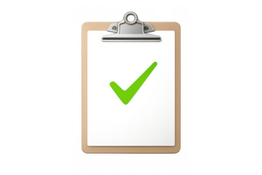 Clipboard displaying a green checkmark on white paper, symbolizing completion, success, and approval in task management