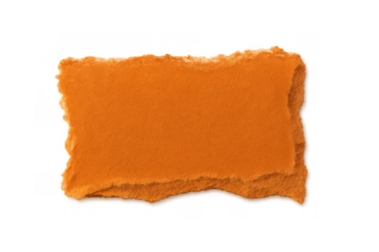 Ripped orange paper fragment with rough textured edges on transparent background, showing blank scrap copy space