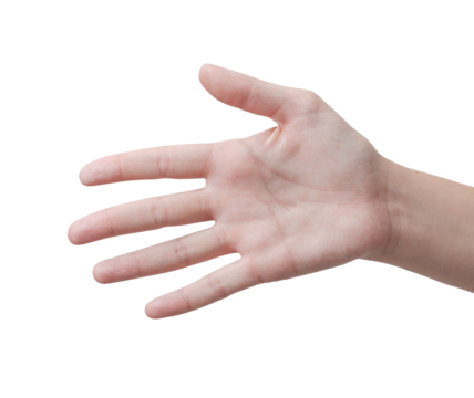 Open hand showing, giving, receiving or holding something on transparent background