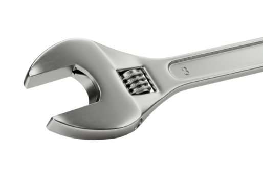 Adjustable wrench tool for repair service and home improvement, showing essential hardware equipment on transparent background
