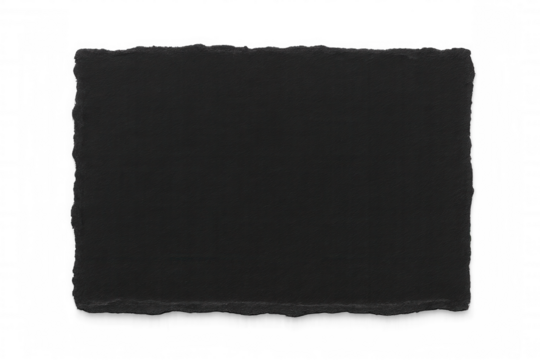 Black torn paper piece with distressed edges, blank grunge scrap texture, isolated on transparent background