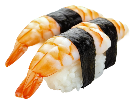 Delicious shrimp nigiri sushi with perfectly cooked toppings on a clean black background transparent background