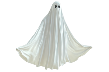 White sheet ghost floating; isolated against a black background, spooky yet gentle