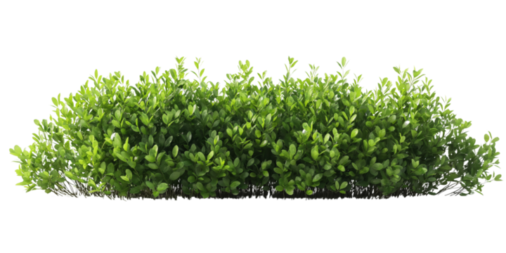 Lush green shrubbery hedge with dense foliage in a natural outdoor setting PNG transparent Background.