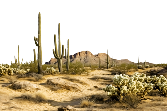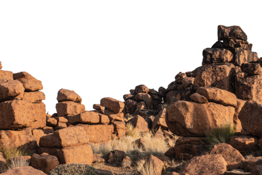 savanna dry grass meadow shrubs with rocks isolated on transparent background