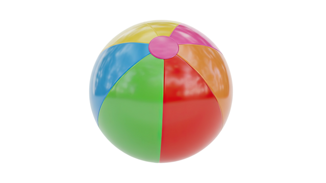 Vibrant multicolored beach ball in a 3D rendering, isolated on white background