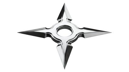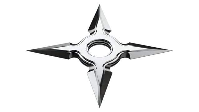 Iconic shuriken throwing weapon, featuring sharp metal blades and a central hole. Symbolizing ninja culture and martial arts