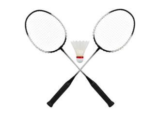 Crossing badminton rackets with pink shuttlecock on transparent background