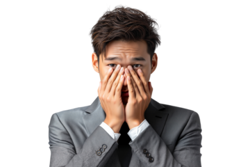 Woman covering face with hands transparent background expression