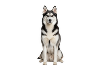 Siberian husky dog sitting and looking forward, isolated on transparent background