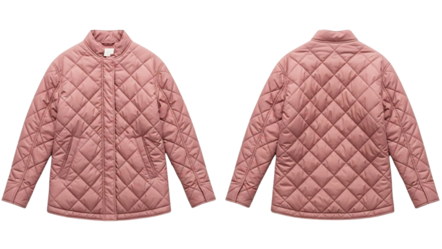 Set of Two Matching Pink Kids Puffer Jackets Isolated on White
