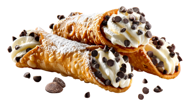 Classic Sicilian Cannoli Pastries with Cream and Chocolate, cut out transparent