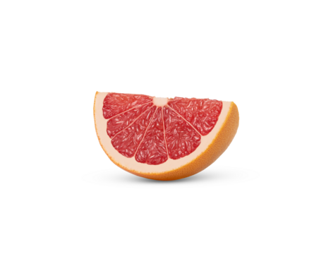 Fresh slice of pink grapefruit isolated. Citrus fruit flesh.