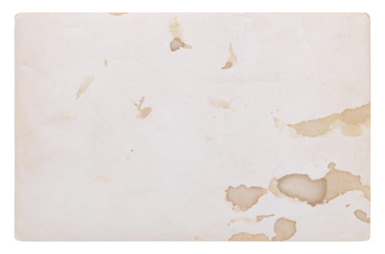 Reverse side of vintage pale gray photograph with old brown stains isolated retro paper element