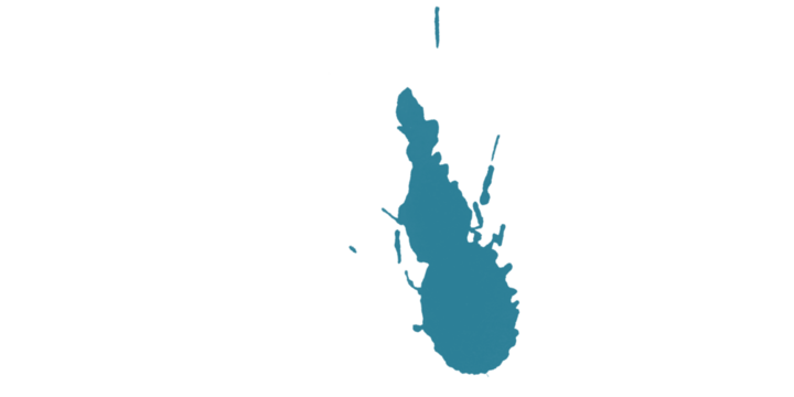 A teal blob shape with pixelated edges on a black background with a smaller blob on the left side