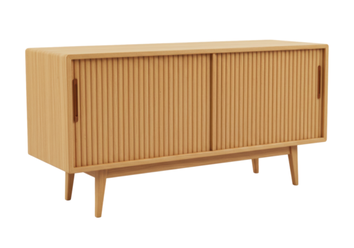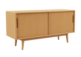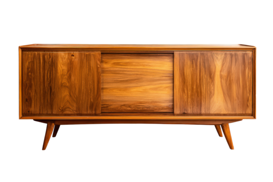 Mid-century wooden sideboard cabinet, isolated on transparent background