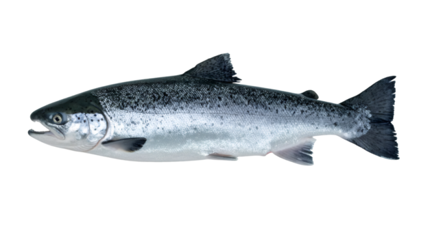 Side view of a fresh salmon isolated on transparent background, perfect for food and cooking projects