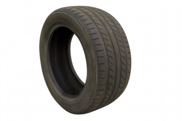 Close-up of a used car tire with visible tread and sidewall, isolated on a transparent background, perfect for automotive-related projects