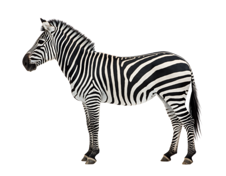 Elegant white horse standing sideways full body portrait, isolated on a transparent background