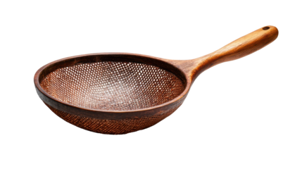 A beautiful wooden sieve for straining food, essential for cooking and baking tasks. transparent background