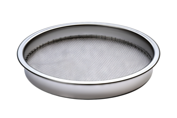 High-quality stainless steel sieve with fine mesh isolated on transparent background, perfect for culinary arts, baking projects, and professional kitchen tools design.