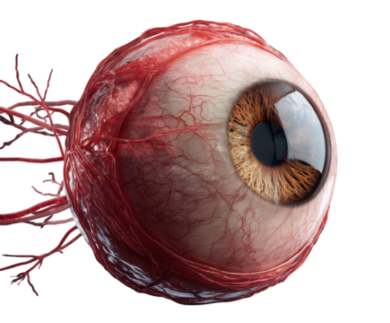 Isolated Detailed Human Eyeball with Blue Iris and Blood Vessels, a Biological Marvel