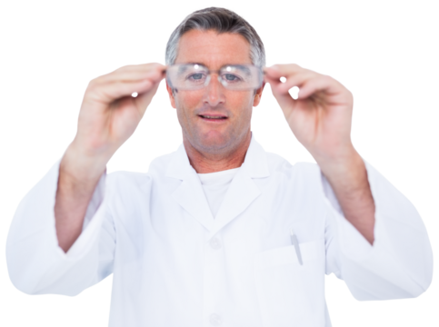 Transparent close-up of man's face with blue eyes and thoughtful expression